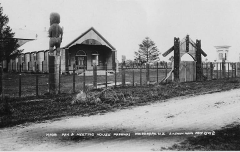 In the very early 1900s Tamahau Mahupuku commissioned the carving of many pou mahara or pou whakairo which still surround Papawai today.
